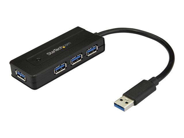 StarTech.com 4 Port USB 3.0 Hub, SuperSpeed 5Gbps met Snellader, Portable USB 3.1 Gen 1 Type-A Laptop/Desktop Hub, USB Bus Power/Self Powered voor High Performance Mini/Compact, Zwart (ST4300MINI)